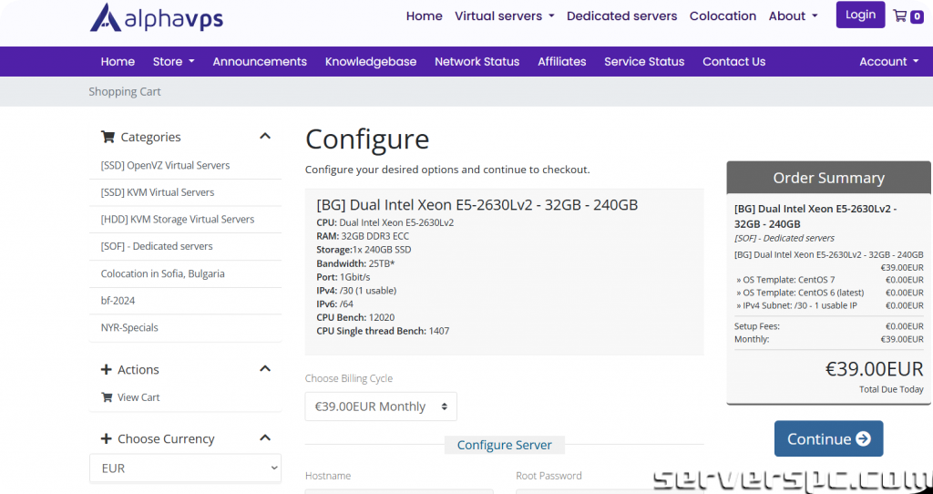 | 2 个英特尔至强 E5-2630Lv2 | (12 核/24 线程) | 32GB字节 | 240GB 固态硬盘 | 25TB @ 1Gbit/秒 | €39.00/月 | 立即订购 |