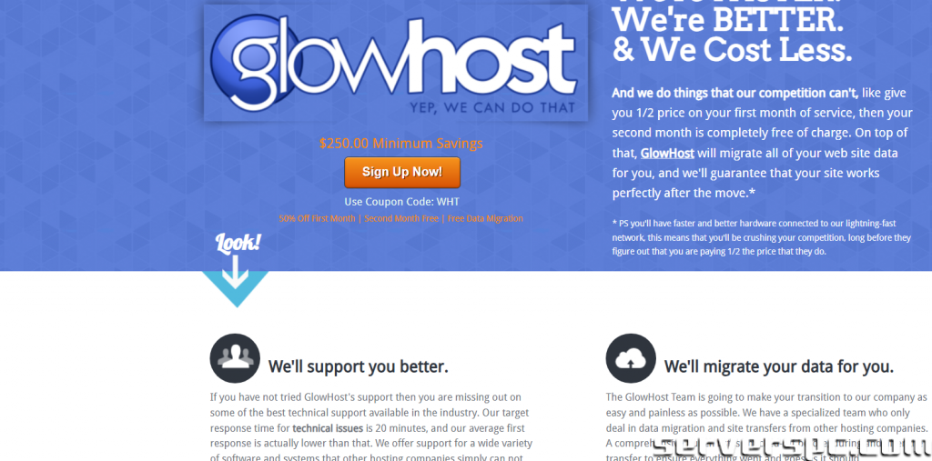 非托管服务器设置费立减50%,或托管服务器首月半价且次月免费,这是我们感谢您选择GlowHost的诚意。