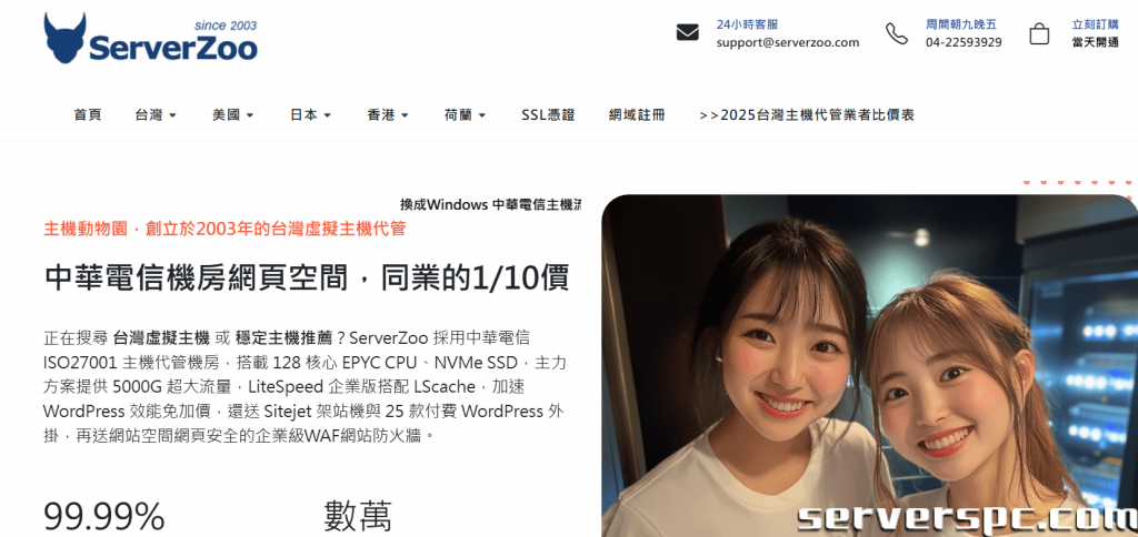 | **公司简介** | ServerZoo 成立于 2003 年(同年起取得完整公司资质),我们在台湾中华电信 Hinet 数据中心拥有专属机柜及全部硬件设备。作为台湾地区规模领先的主机服务商之一,我们在日本东京及台湾均设有**实体直属办事处**。 |