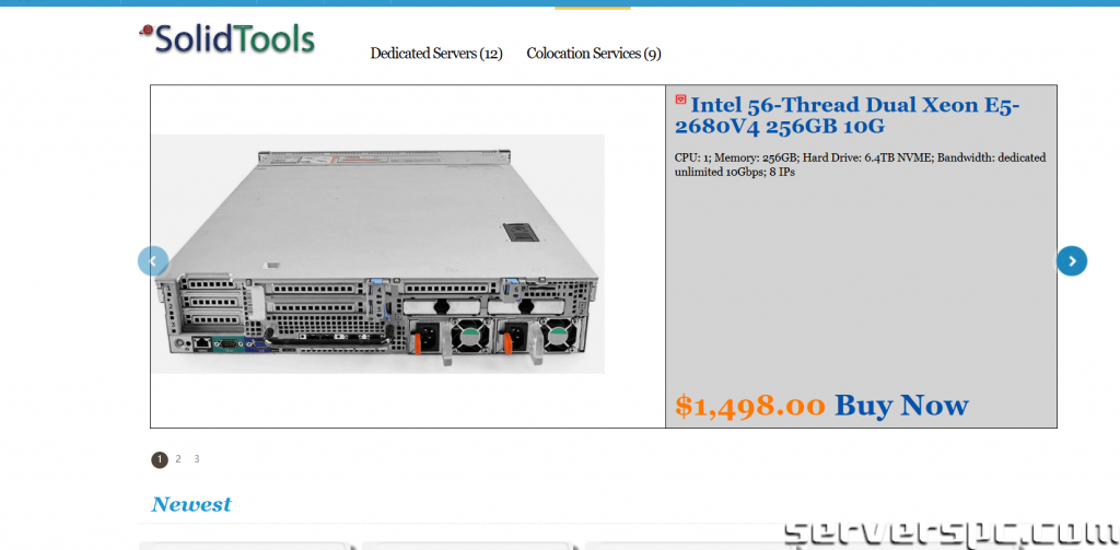 | **56线程双路Xeon E5-2680V4 — 10Gbps专用端口 — 免费20Gbps DDoS防护 — 256GB DDR4内存 — 2 × 3.2TB NVMe SSD — 8个IP(5个可用)** | ~~$1,598.00~~ | **$898.80** | “wh40percent” 立减40% | [购买链接](https://www.solidtools.com/Store/Product?productid=1111765) |