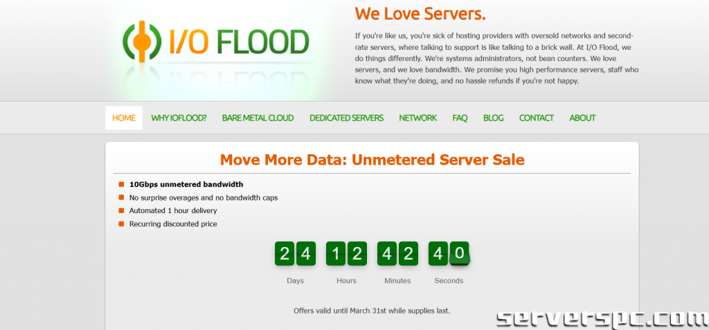 - I/O FLOOD 由真正的系统管理员运营。我们热爱服务器,热爱带宽。我们承诺对待您的服务器如同对待自己的设备。