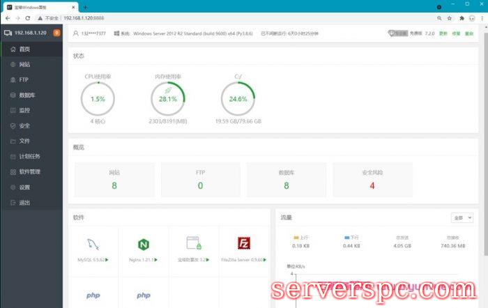宝塔windows面板是提升运维效率的服务器管理软件,最新面板仅支持Windows Server 2008 R2/2012/2016/2019,64位系统(中文简体),且未安装其它环境,低于08 R2或其它系统(包括家用系统,家用推荐安装方法)不建议安装使用。支持一键WNMP/WAMP/IIS/SQLServer/集群/监控/网站/FTP/数据库/JAVA/PM2等100多项服务器管理功能。 有30个人的专业团队研发及维护,经过上百多个版本的迭代,功能全,少出错且足够安全,已获得全球百万用户认可安装。