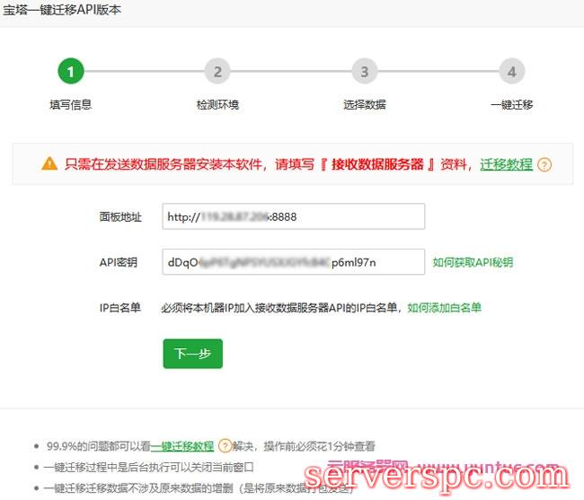 API密钥:填写在迁入服务器操作的 中已获取的 API 接口密钥。