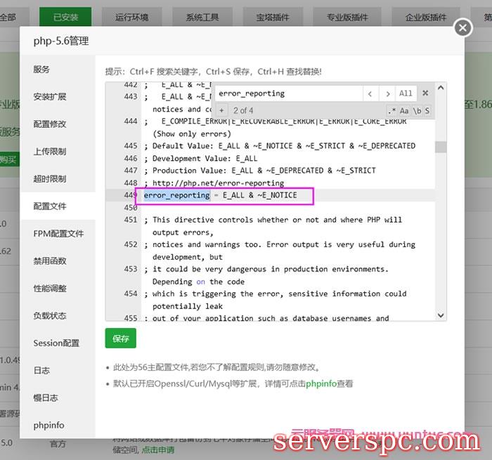 这里,我们可以检查服务器是否开启PHP报错的,这样开启后我们可以看到到底是什么原因导致的报错,这样比直接500报错提示更为友好。