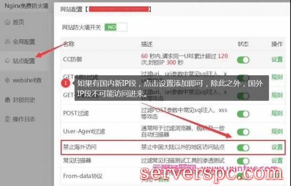2、禁止国外IP,只允许国内IP段落访问功能!