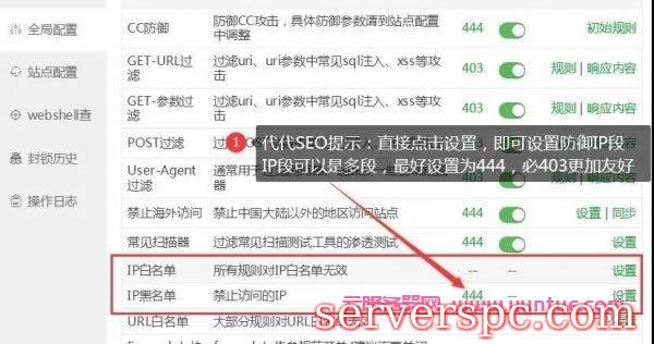 这里大家注意一下,大家在黑名单屏蔽,使用444比403更加友好,444是直接阻断服务器,403是不能响应,对比之下,444对于搜索引擎SEO更加友好一些。