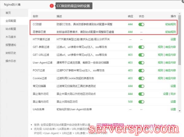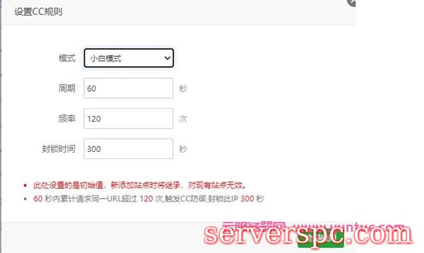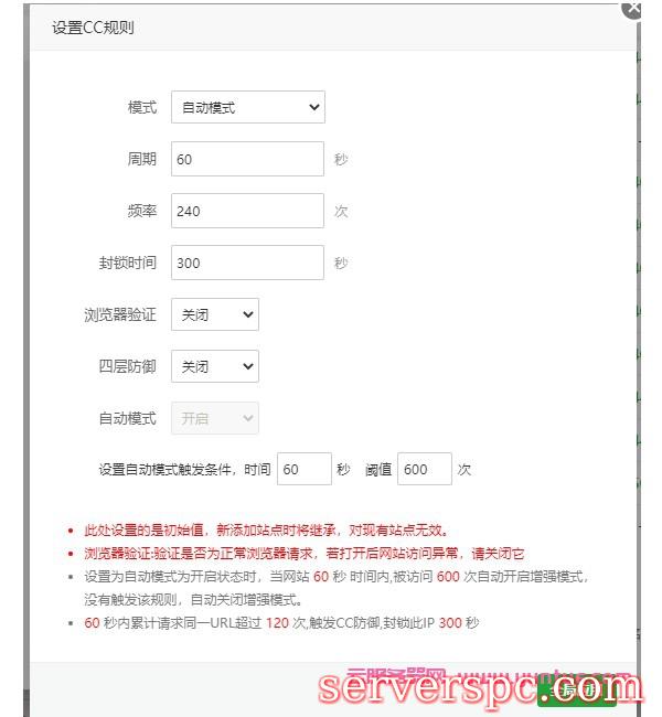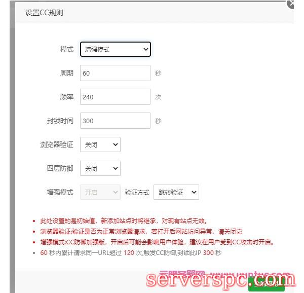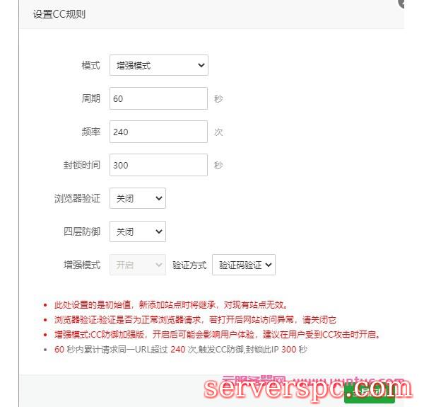 那么通过上面的简单举例,相信大家应该明白了这两个设置的区别了吧。主要设置还是设置第一个CC防御部分