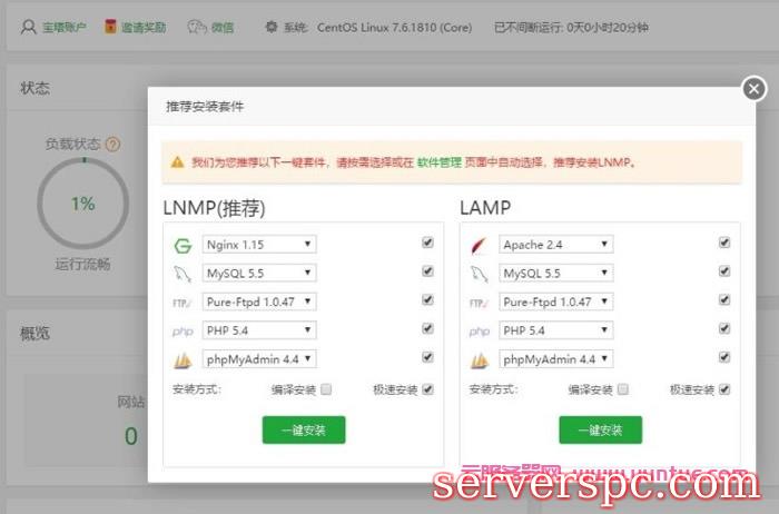 新手首次进入宝塔后台,推荐的组合是LNMP,安装方式有 编译安装和 快速安装。两者有何区别呢?