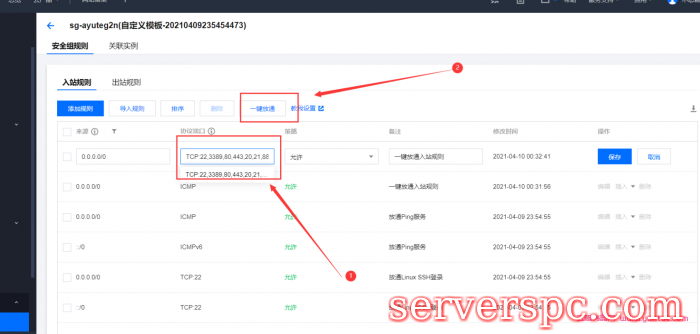 3.在协议端口中添加 8888 端口,或直接然后一键放通