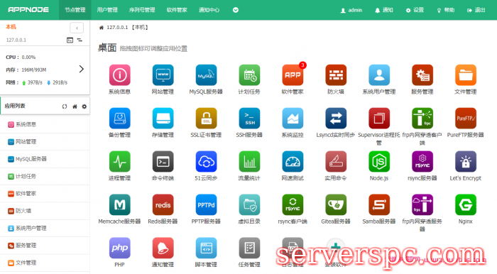 (1)集中式设计,快速切换管理:安装一个控制中心即可管理你的所有服务器,其它服务器只需要安装受控端。再也不用分别登录到每台服务器去管理了。(2)强大的网站管理功能:通过整合 Nginx、PHP、MySQL 等组件,帮助您快速创建和配置网站。(3)快速安装升级,丰富的软件市场:仅需执行一条命令即可全自动安装,安装耗时不到 1 分钟。版本升级无需重装,一键点击即可在线升级。丰富的软件市场,满足您多样化的服务器软件需求,您的服务器不再仅仅是 Web 服务器。(4)多重安全加固,资源实时监控:从操作系统层面和应用层面,提供多项加固措施保障您的服务器和应用安全。强大的系统监控功能,让您对服务器的资源消耗情况了如执掌。(5)全面开放的 API:全面开放的 API 机制,便于您将 AppNode 已有的功能整合到您的系统中。