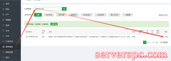 在宝塔面板后台的软件商店 > 宝塔插件 > 堡塔网站加速,最右侧点击安装,并进入设置。