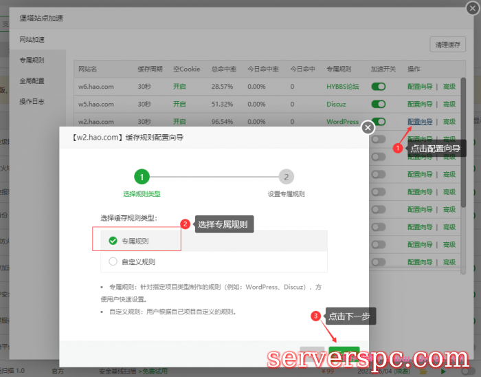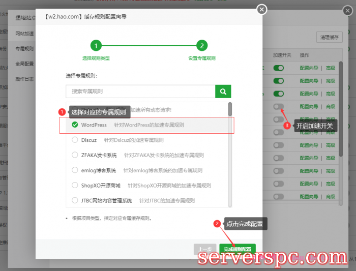根据你使用建站程序选择加速专属规则,列表中没有的话就用 default规则也可以。