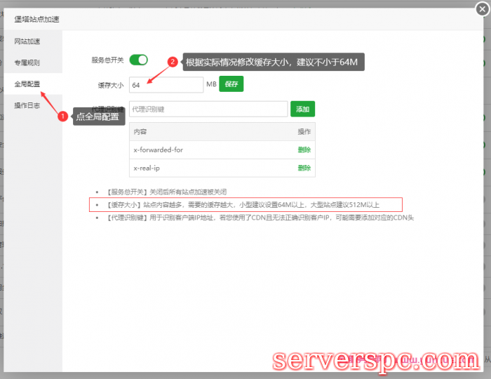在全局设置中有一个缓存大小默认 64M ,站点内容越多需要的缓存越大,小型网站建议设置64M以上,大型网站建议512M及以上。