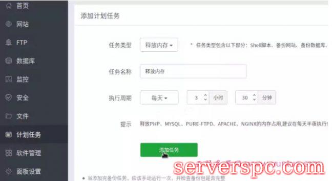 针对宝塔面板因内存过小MySQL频繁崩溃问题,首先在宝塔面板计划任务中添加“释放内存”任务,时间可以设置为每天凌晨的3点左右。