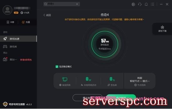 加速器建议大家可以试试使用奇游加速器。网络优化效果非常好,原本好几百的延迟加速之后就只有4/50ms的延迟了,而且全程十分的稳定,小编使用这么长时间从来没有出现过断线掉线的情况。