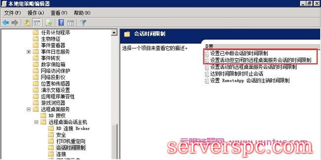 计算机配置->管理模板->Windows组件->远程桌面服务->远程桌面会话主机->会话时间限制