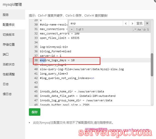 其实,这个是MySQL二进制日志,默认保留10天mysql二进制日志。此日志的作用用于数据库故障时候恢复数据库使用,如果占用不是很大,磁盘空间允许,建议保留。不过宝塔官方给出的回答是这样的,但是个人也遇到过几次,有时候安装的会有时候安装的宝塔就不会出现这问题。如果不需要日志功能就在MYSQL的修改配置里面,找到log-bin =mysql-bin把他注释掉。这样#log-bin=mysql-bin。