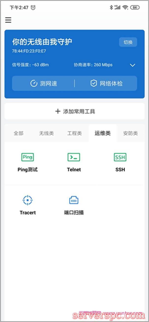 这里推荐大家一款非常实用的工具APP——网络百宝箱,这款APP支持无线类、工程类、运维类、安防类等各种实用的功能,其中Tracert就可以帮助你快速通过手机进行ping检测,快速定位网络问题点。