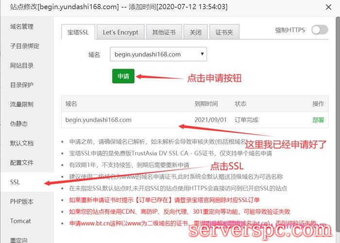 当然,你也可以不用宝塔面板申请的ssl安全证书,而可以用市面上其它任何一家免费的ssl安全证书。