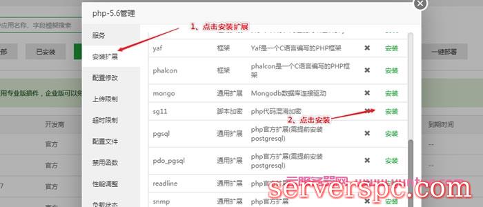 软件管理→启动的PHP版本服务→设置→安装扩展,选择sg11 脚本加密 php代码混淆加密!