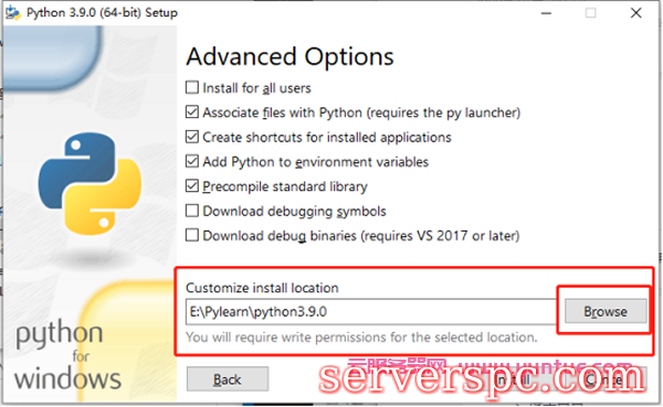 2)自定义安装路径选项下的 “Add Python 3.9 to PATH”记得一定勾选上,它能够将 python.exe 文件添加到系统路径下,此时在系统自带的 cmd 窗口中可直接执行 Python 程序,进行编译,十分方便。