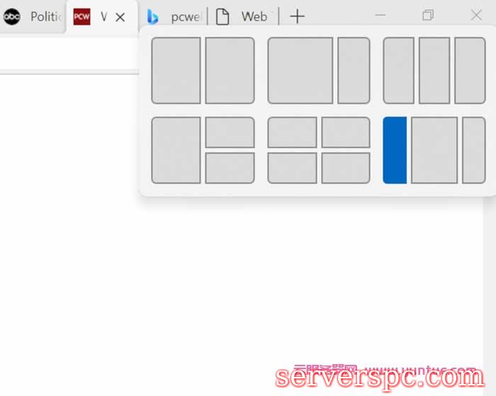在 Windows 11 中的窗口中,将光标悬停在窗口右上角的“最大化窗口”图标上不仅仅是用所选窗口填充屏幕。它允许从各种配置中进行选择来组织该窗口,从“四个角”方向到沿屏幕一个角的窄条。