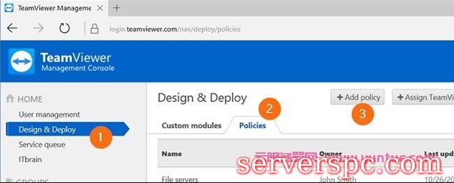 1、若要在TeamViewer管理控制台中添加新策略,首先要登录到TeamViewer管理控制台,在主页面中,选择“设计与部署”。