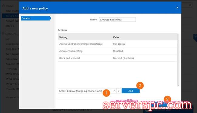 3、添加新策略页面中,我们可定义策略选项,点击选择设置下拉菜单,选择您想要定义的策略并设置所需属性的值,然后点击“添加”按钮,并选择附加选项,这里可根据实际情况添加,所有设置完成后,点击“保存”按钮即可。