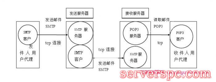 邮件服务器采用的是客户端服务器模式,其工作过程如下图所示: