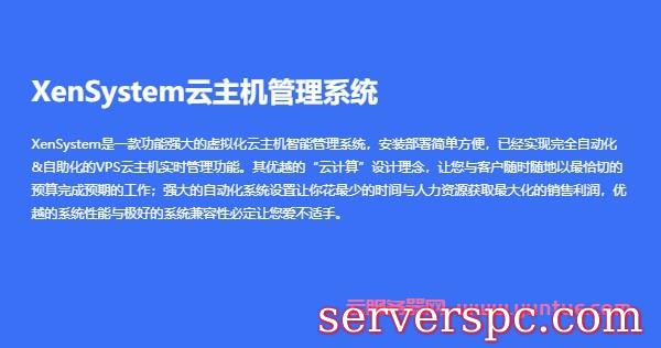 云谷主机管理系统怎么样?云谷科技公司开发的xensystem是一款功能强大的虚拟化云主机智能管理系统,安装部署简单方便,已经实现完全自动化&自助化的VPS云主机实时管理功能。其优越的“云计算”设计理念,让您与客户随时随地以最恰切的预算完成预期的工作;强大的自动化系统设置让你花最少的时间与人力资源获取最大化的销售利润,优越的系统性能与极好的系统兼容性必定让您爱不适手。