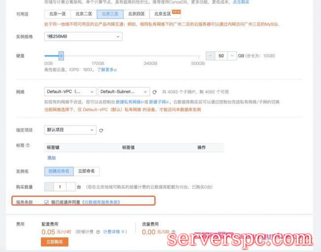 按照如下信息购买配置TencentDB for Mysql 数据库,具体配置如下