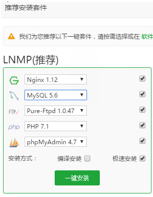 打开浏览器访问该网址,登陆面板,会提示安装 LNMP。