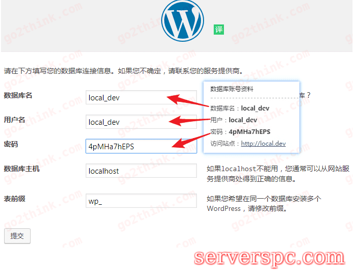 完成后,记下数据库账号资料,之后创建 wordpress 时要用到。