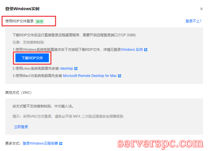 Windows,Linux 和 Mac OS 都可以使用 RDP 方式登录云服务器。