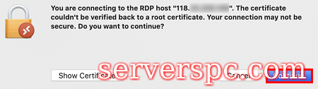 在弹出的窗口中单击【Continue】确认连接。如下图所示: