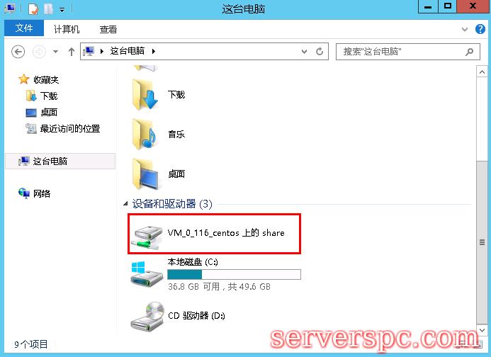 > 【这台电脑】,您可在云服务器系统界面查看已共享的文件夹。如下图所示: