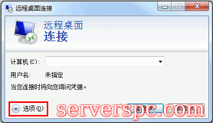 在【远程桌面连接】对话框中,输入云服务器公网 IP 地址,单击【选项】。如下图所示: