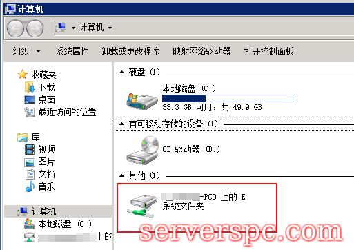 在 Windows 云服务器中,单击【开始】>【计算机】,即可以看到挂载到云服务器上的本地硬盘。如下图所示: