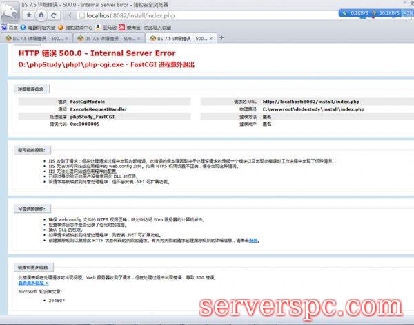服务器windows2008或windows2018等服务器系统上面配置php时,IIS7.0显示正常,但phpinfo.php显示不正常,出现“HTTP 错误 500.0 – Internal Server Error C:\PHPServer\PHP\php-cgi.exe – fastcgi 进程意外退出”的提示。