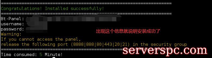 3. 我们耐心等待一会儿,等宝塔面板自动安装完成(中间若出现是否安装*Y/N?时,我们只需要输入y就行了)。
