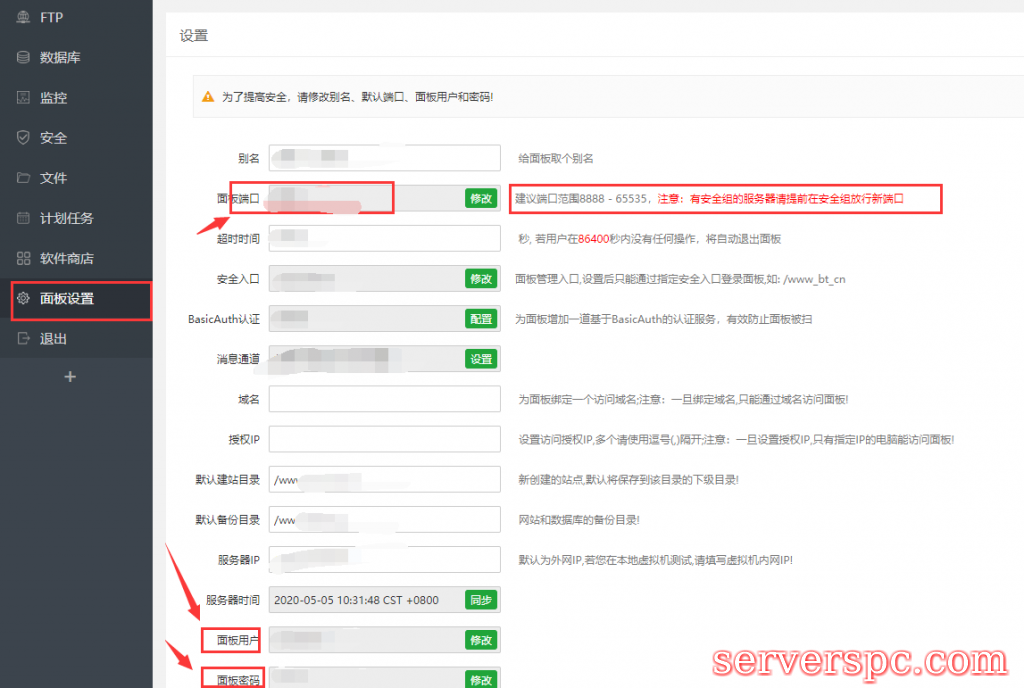 6.为安全起见,建议修改你的用户名和密码,以及面板默认端口。