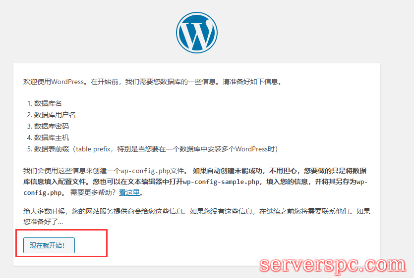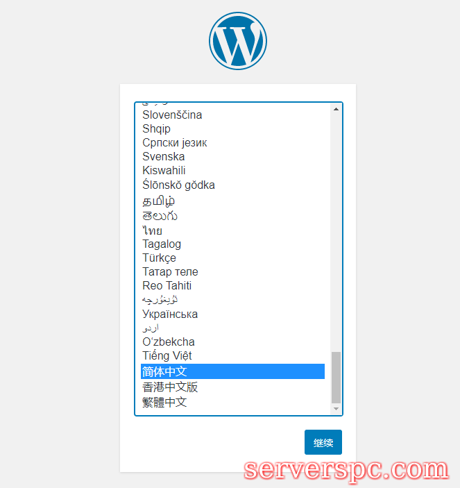 9.在线安装WordPress网站程序的时候,先选择语言“简体中文”,然后填写数据库名和密码(就是上一步叫你保存的)