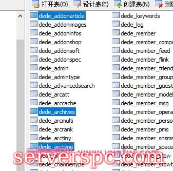 将原网站(织梦dedecms程序)数据库中的三个数据表导出,分别是:栏目数据表“dede_arctype”,文章数据表“dede_archives”以及文章对应的内容数据表“dede_addonarticle”,其中“dede_”为数据表前缓,若你在安装时更改过数据表前缀,只需找准对应的数据表名就可以了,如下图: