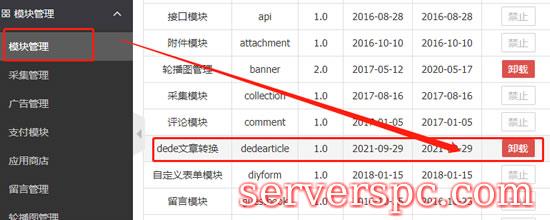 安装放置好后,回到网站后台在左侧找到【模块管理】点击下面的【模块管理】,在右侧找到【dede文章转换】,如下图点击安装(我这里已经安装好了,没安装的会显示【安装】);