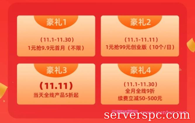 豪礼④11月全月:除双11当天外,【云·速成美站】全线产品享9折优惠!续费立减50-500!
