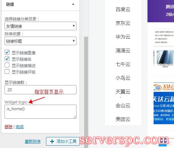 最后,需要说一下云服务器网(www.yuntue.com)就是通过Widget Logic插件,来指定侧栏页面调用is_home()首页,轻松实现了仅首页显示友情链接这一功能,小伙伴们都学会了吧?