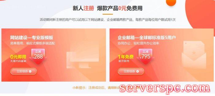 新网双重礼遇活动开始了!新网,国内TOP2的域名注册商,跟阿里万网齐名。现在推出了一个无门槛的新人活动,不需要做任务,点击即可领取,新人注册 爆款产品0元免费用。活动期间新注册的用户可以试用以下网站建设、企业邮箱两款产品,每款产品每位用户限试用1次。