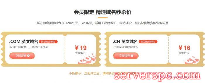 3、域名优惠券领取形式为注册成功后领券,实名即享,每个产品每个新会员限购1个,优惠券领取后有效期为3天,领取后可在【控制台】—【优惠券】中查看;