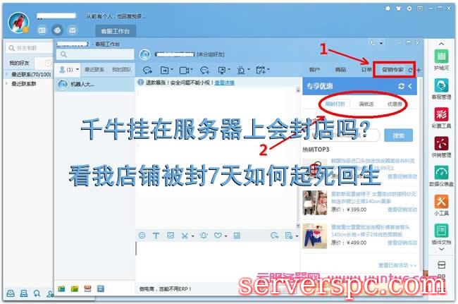 千牛挂在服务器上会封店吗?一般挂千牛不会被封的,违反淘宝规则才会被封。这个您不需要担心,用服务器是节省了很多成本。但是要在服务器上挂,服务器系统只能用win7或win10系统,当然使用win2003或win2008一般也可以用。