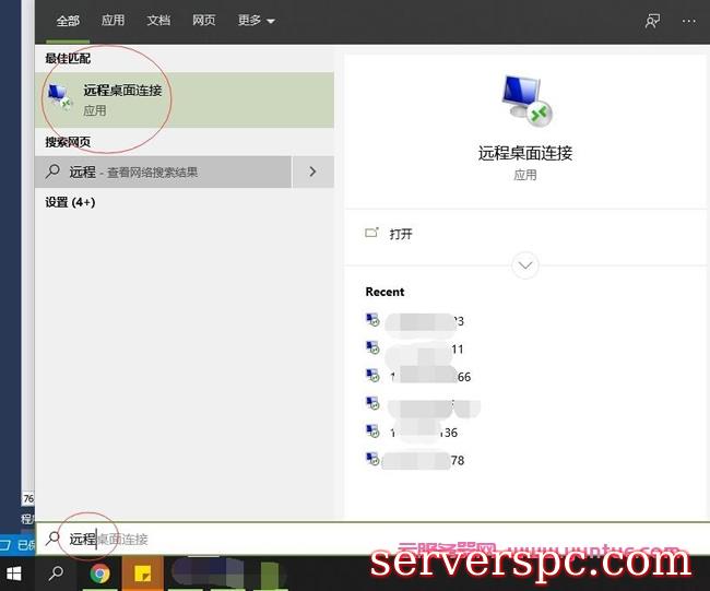 首先我们就打开Windows系统电脑上的远程桌面工具,在电脑左下角搜索框中输入“远程”就会看到“远程桌面连接”的应用(如果你是英文操作系统输入remote),点击打开,如下图所示: